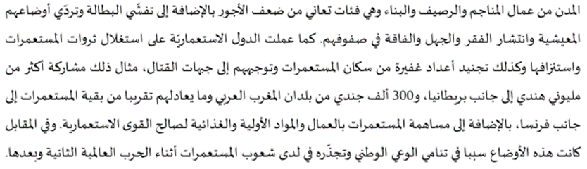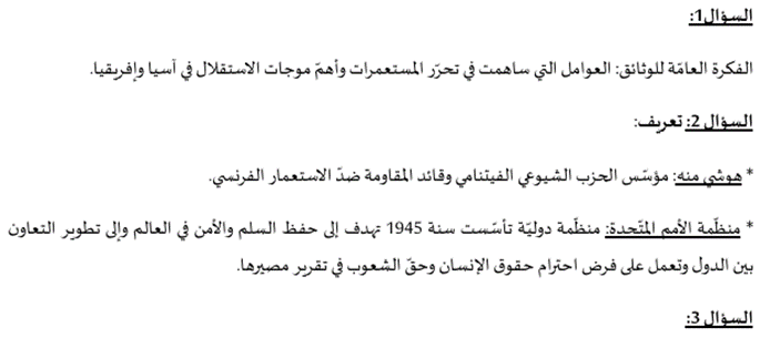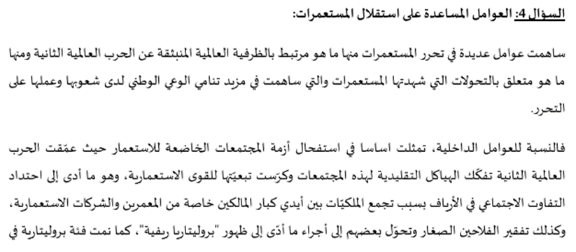 اختبارات الباكلوريا حول درس استقلال المستعمرات