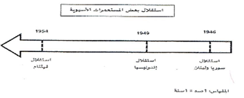 3/رتب الاحداث التالية على سلم زمني :استقلال اندونيسيا , استقلال فيتنام , استقلال سوريا و لبنان