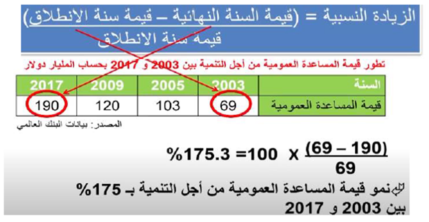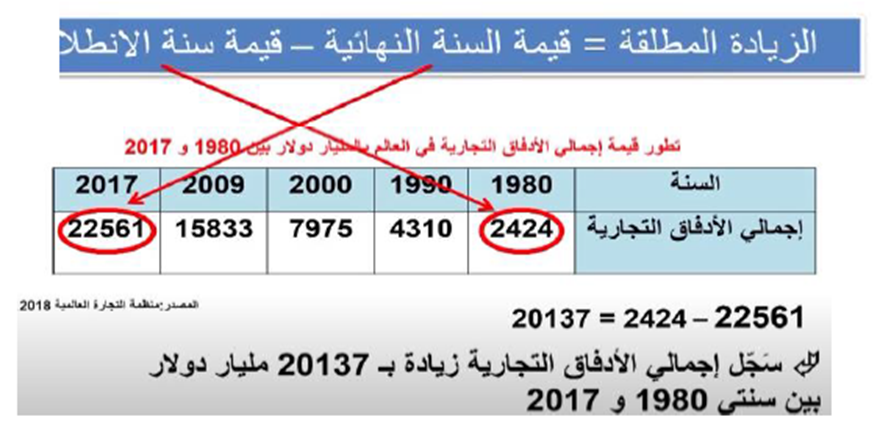 *الزيادة النسبية : القيمة سنة الوصول –القيمة سنة الانطلاق : القيمة سنة الانطلاق ضارب 100