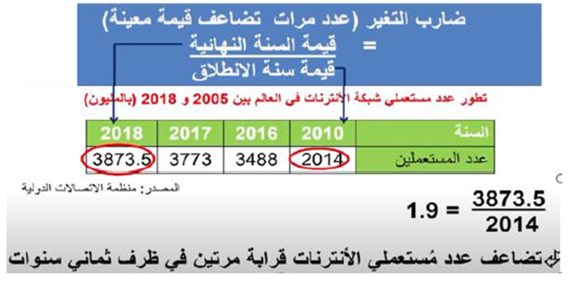 *التعليق على الجدول الاحصائي : باستقراء الجدول واستخراج معطيات احصائية جديدة :ضارب التغيير – الزيادة المطلقة – النسب المائوية…