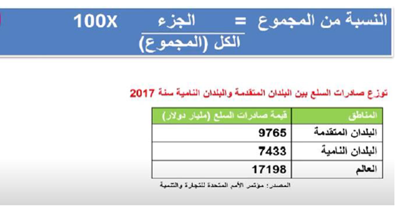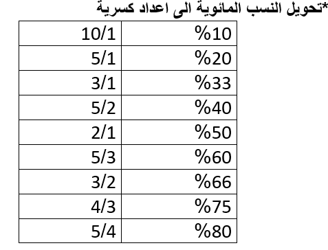 *النسبة المائوية : الجزء / الكل ضارب 100