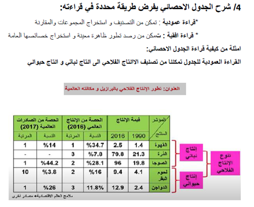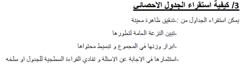 2/ كيفية شرح الجدول الاحصائي