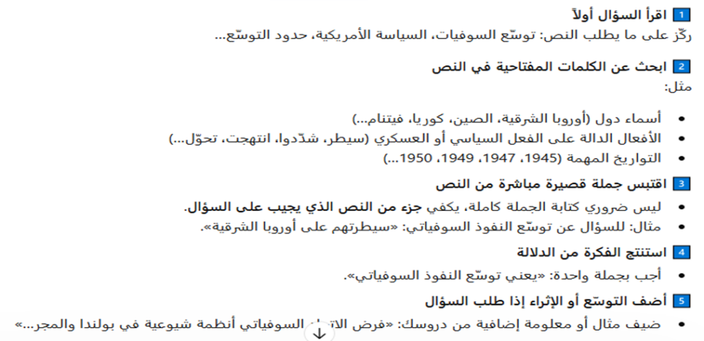 منهجية شرح النص من خلال مثال يتعلق بدرس العلاقات الدولية من الحرب الباردة الى انهيار الاتحاد السوفياتي