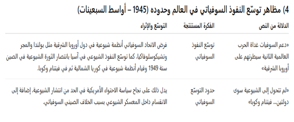 السؤال عدد4:أبرز مظاهر توسّع النفوذ السوفياتي في العالم وحدوده من نهاية الحرب العالمية الثانية إلى أواسط السبعينات