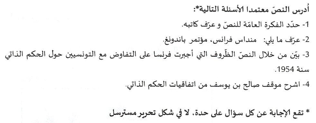 سلسلة اختبارات باكلوريا حول تونس: المسيرة نحو الاستقلال من 1945الى 1956
